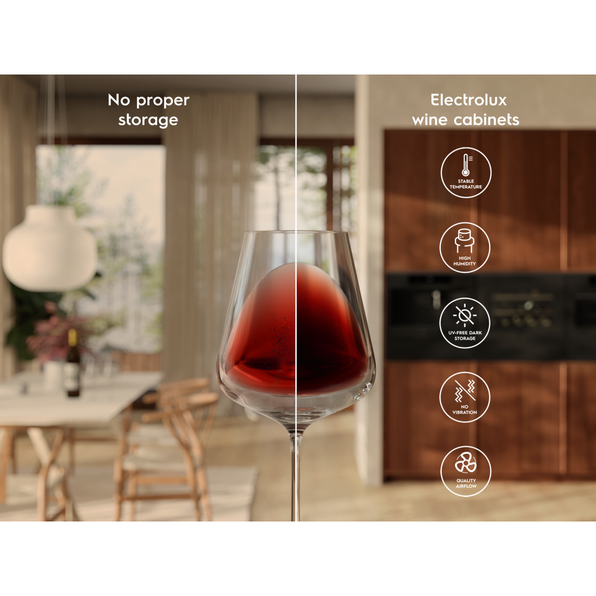 Diğer cihazlarınızla mükemmel uyum sağlayan bir Şarap Dolabı.