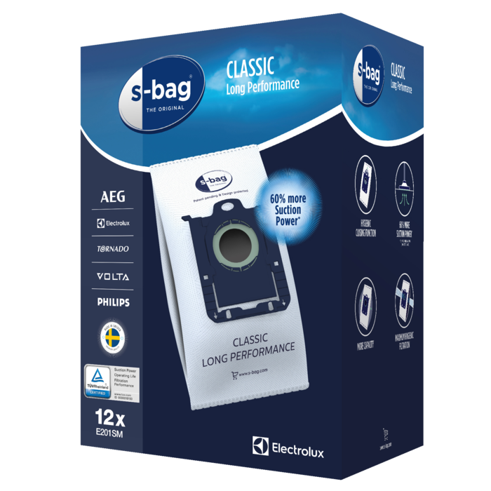 s-bag® Classic Long Performance lasts 50% longer than traditional vacuum cleaner paper bags.